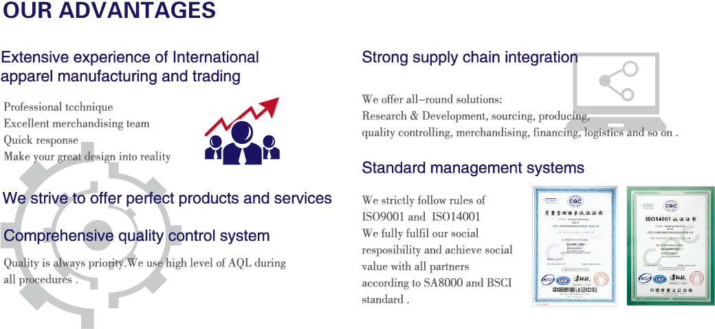 The Corp. owns more than 1000 domestic suppliers and several holding subsidiaries. In Jiangning District of Nanjing, it has its own R&D centre to develop high grade knitwear and garments.